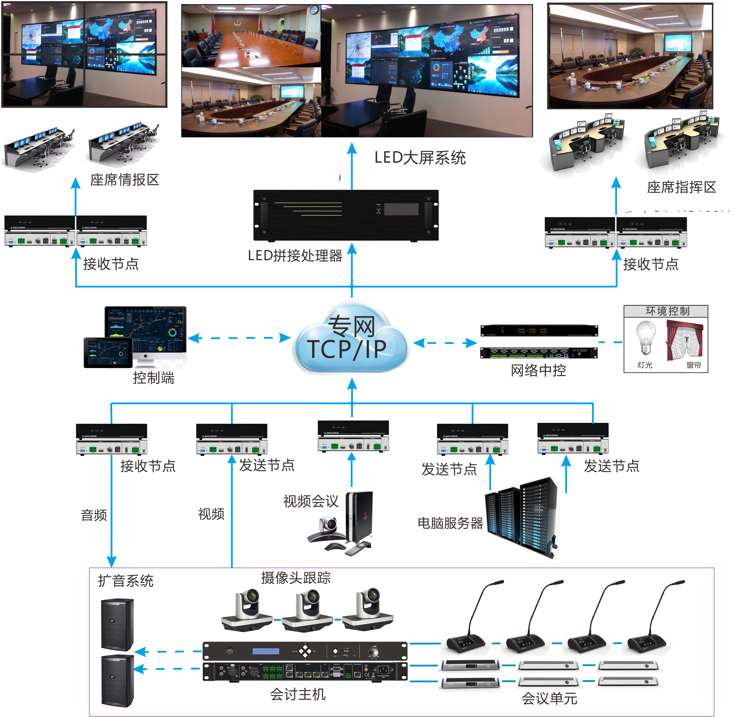 分布式拼接處理系統(tǒng)+WIFI會(huì)議系統(tǒng)+多媒體中控系統(tǒng)+對(duì)講廣播系統(tǒng)