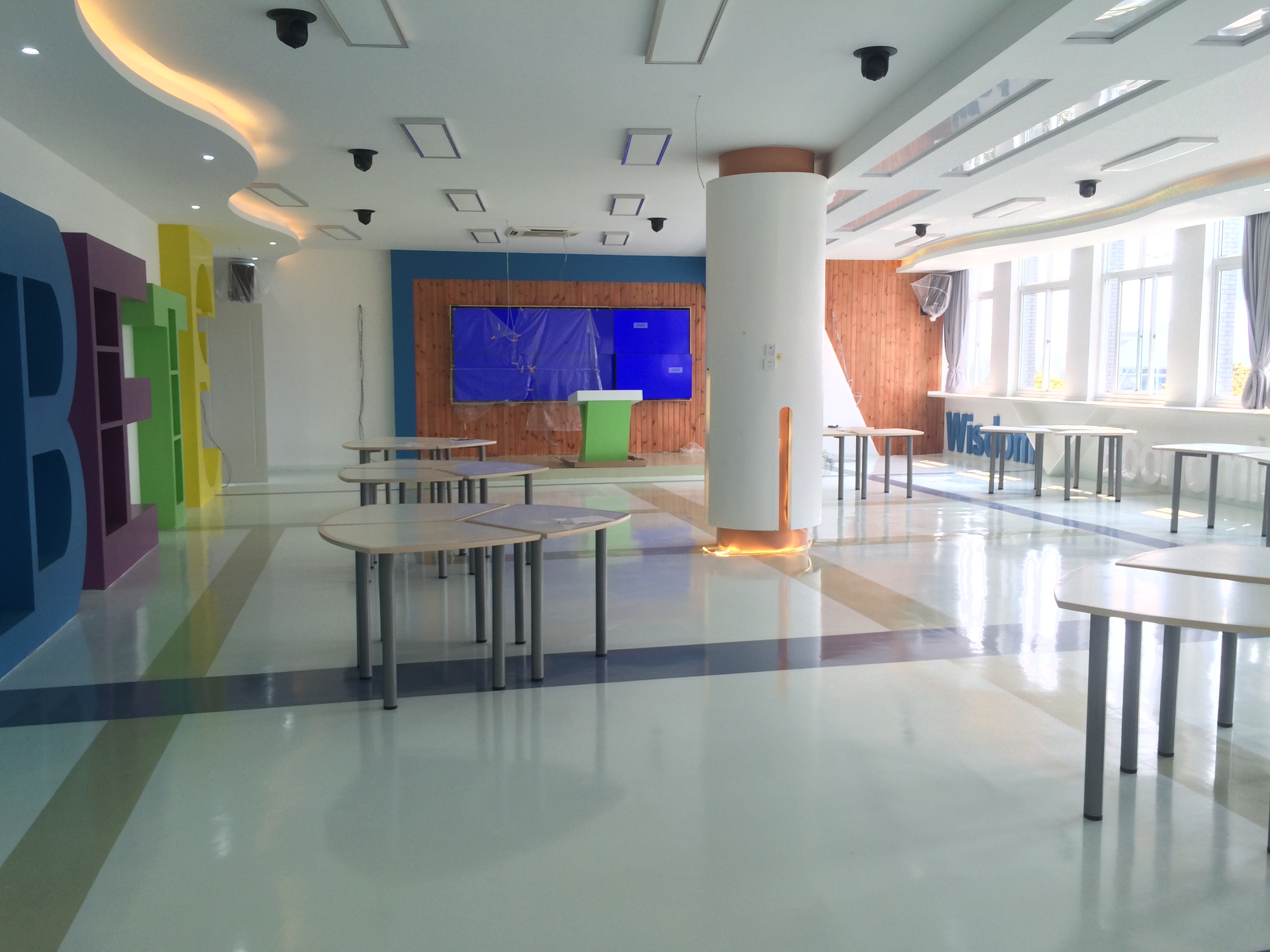 寧波經貿學校會議室中安裝了京邦電子(KING-BANG)可編程中央控制主機。該系統以中央控制主機K-4960為核心,功能強大。通過無線真彩觸摸屏等設備作為人機交互式平臺,一鍵隨心控制各種顯示終端、投影機、展示臺、DVD、功放、會議系統、電動屏幕、電動窗簾、燈光等設備。